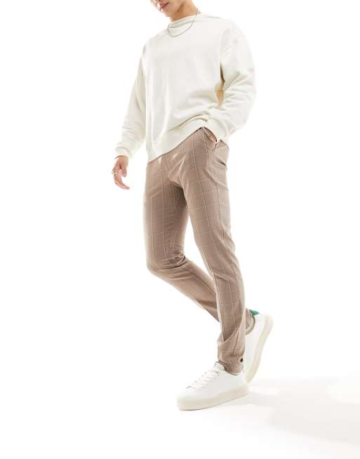 ASOS DESIGN smart skinny pants in stone window pane check