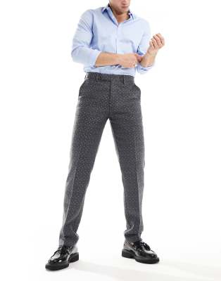 ASOS DESIGN smart slim pants in dark grey polka dot herringbone