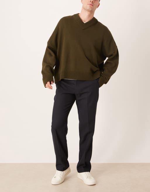 ASOS DESIGN smart straight leg wool mix pants in navy