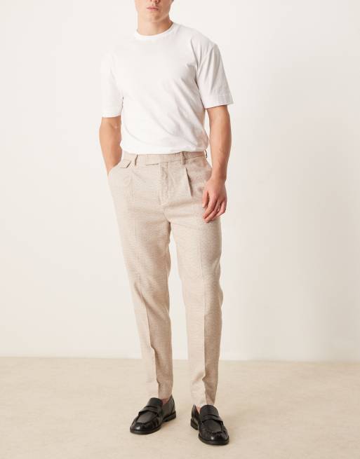 ASOS DESIGN smart tapered fit wool mix pants with coin pocket in ecru slub