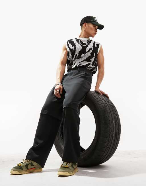 ASOS DESIGN smart two layer wide leg pants in dark charcoal
