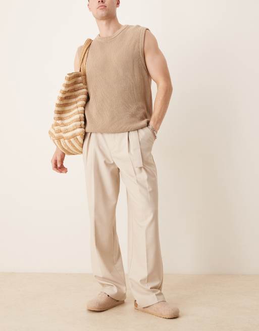 ASOS DESIGN smart wide leg belted pantss with front pleat in stone