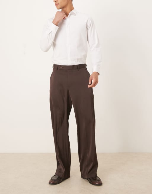 ASOS DESIGN smart wide leg pants in dark brown satin