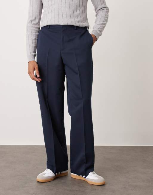 ASOS DESIGN smart wide leg pants in navy with elasticated waist