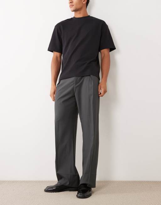 ASOS DESIGN smart wide leg pants with deep pleat in charcoal microtexture