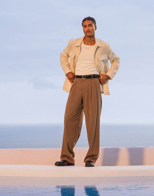 ASOS DESIGN smart wide leg pants with double pleats in brown