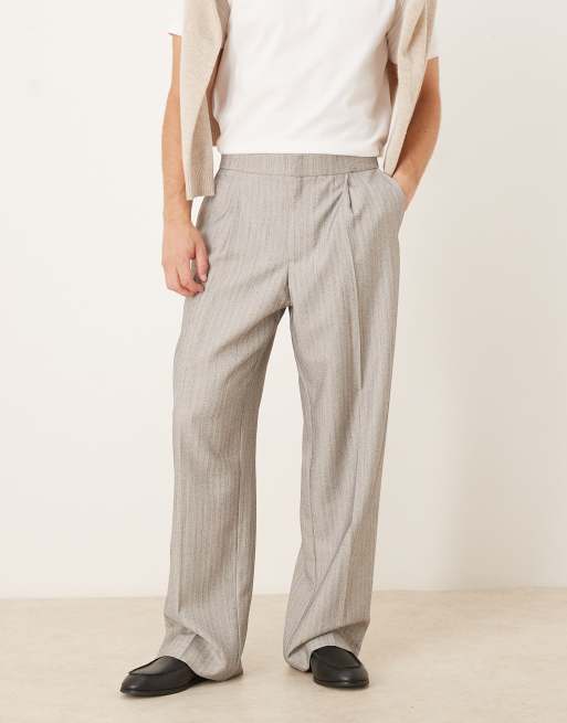 ASOS DESIGN smart wide leg pants with front pleat and elasticated waistband in light grey herringbone