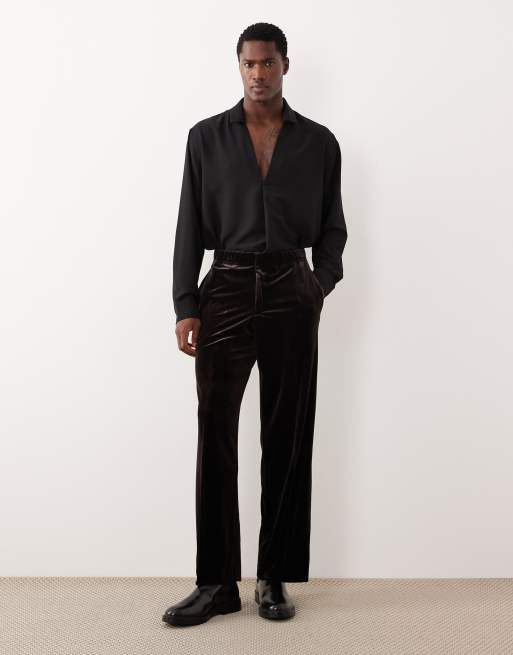 ASOS DESIGN smart wide leg velvet pants in dark brown with elasticated waist