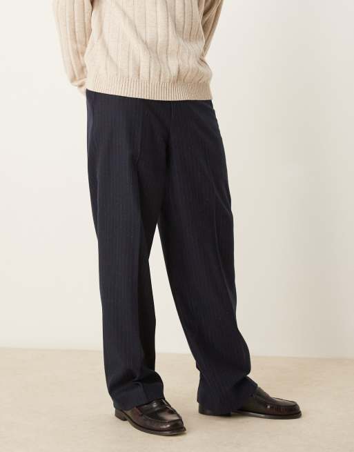 ASOS DESIGN smart wide leg wool blend pants in navy pinstripe