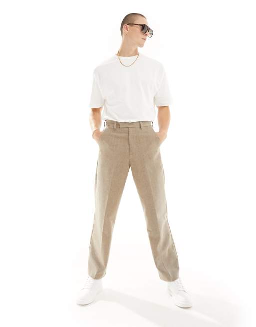ASOS DESIGN smart wide leg wool mix pants in brown herringbone