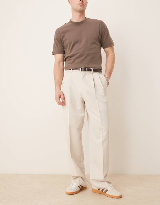 ASOS DESIGN smart wide pants with double pleats in ecru