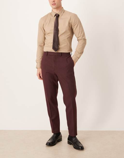 ASOS DESIGN smart wool mix tapered pants in burgundy