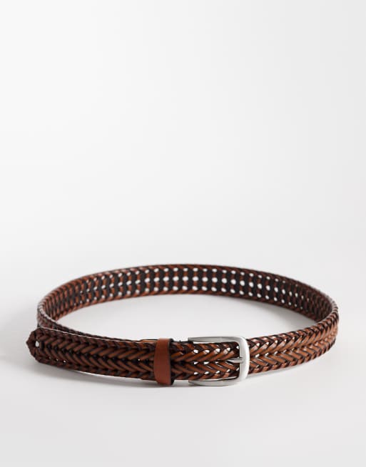 ASOS DESIGN smart woven leather belt in tan