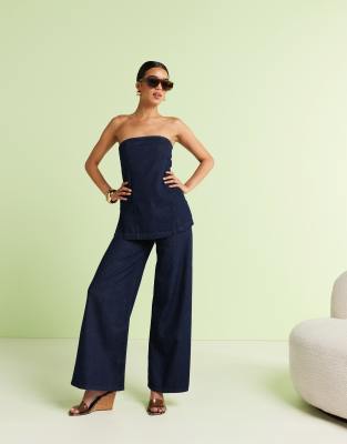 ASOS DESIGN soft palazzo jeans & bandeau top set in inky wash