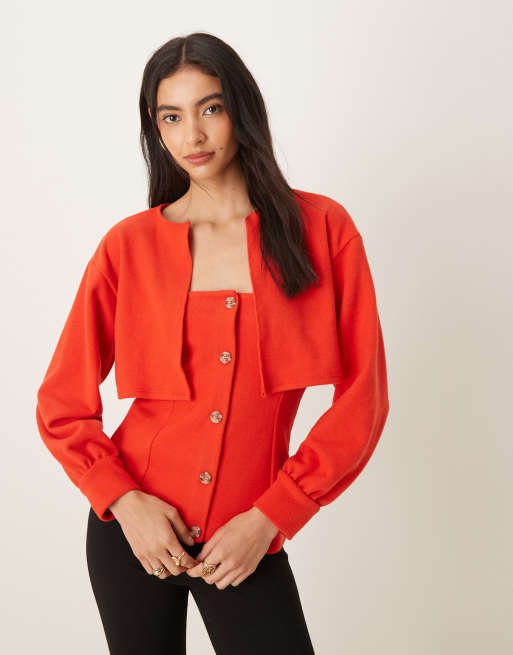 ASOS DESIGN soft touch 2-in-1 bandeau & cardi in red