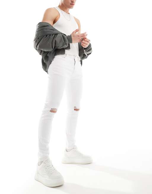 ASOS DESIGN spray on jeans with power-stretch and rips in white