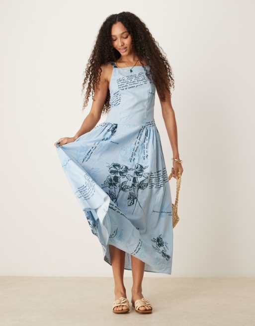 ASOS DESIGN square neck dropped waist midi dress in blue floral