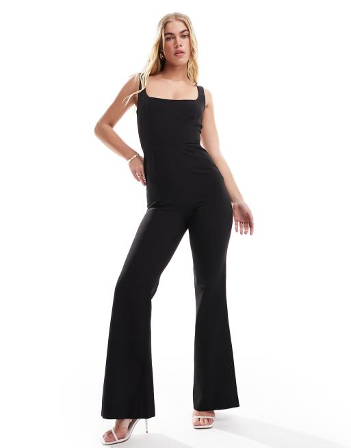 ASOS DESIGN square neck flare leg tailored jumpsuit in black