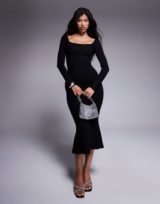 ASOS DESIGN square neck softline long sleeve midi dress in black