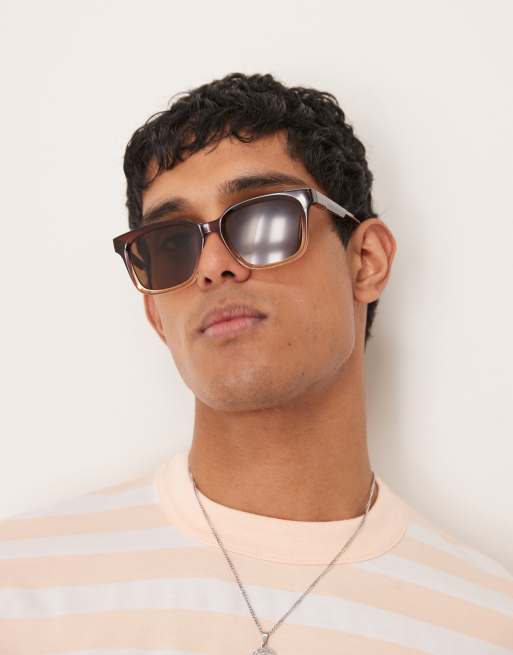 ASOS DESIGN square sunglasses with brown lens and brown ombre frame