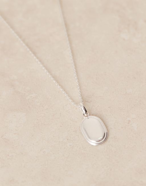 ASOS DESIGN sterling silver oval pendant necklace in silver
