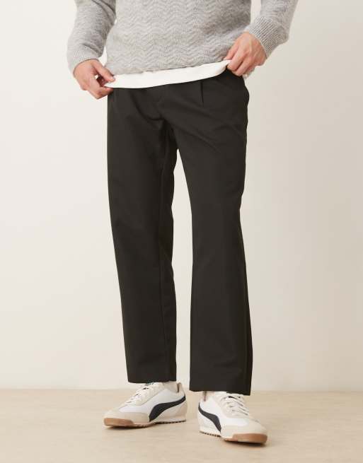 ASOS DESIGN straight leg cropped pants with half elasticated waistband in black