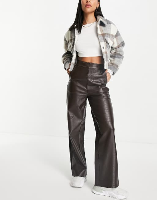 ASOS DESIGN straight leg pants in croc PU in chocolate brown