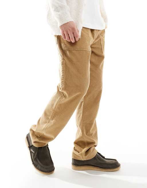 ASOS DESIGN straight pull on cord carpenter pants in beige