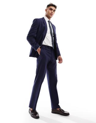ASOS DESIGN straight suit pants with linen in navy