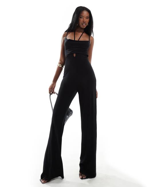 ASOS DESIGN strappy cut out halter jumpsuit in black