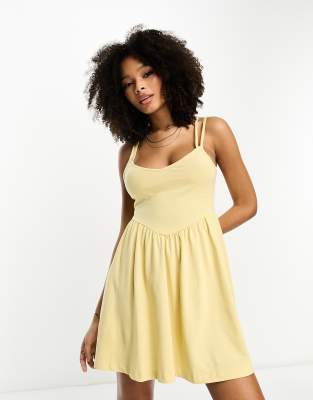 ASOS DESIGN strappy mini dress with v waist seam in lemon