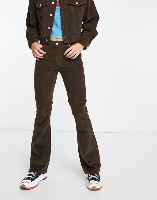 ASOS DESIGN stretch flare jeans in dark brown corduroy (part of a set)