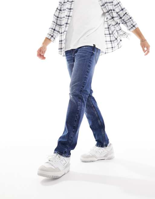 ASOS DESIGN stretch slim jeans with rips in dark wash blue