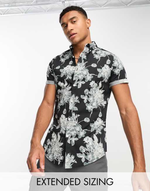 ASOS DESIGN stretch slim shirt in black and grey floral print