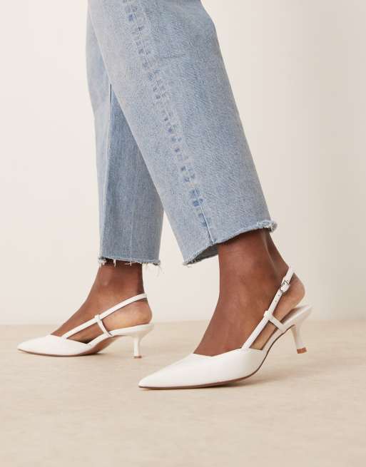 ASOS DESIGN Strike slingback kitten heeled shoes in white