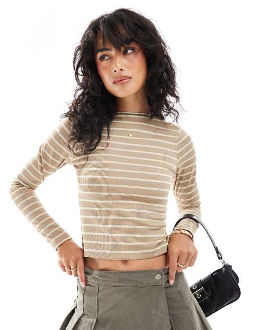 ASOS DESIGN stripe long sleeve top with low back in brown