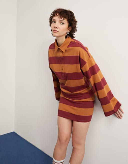ASOS DESIGN stripe rugby shirt mini dress in mustard & burgundy