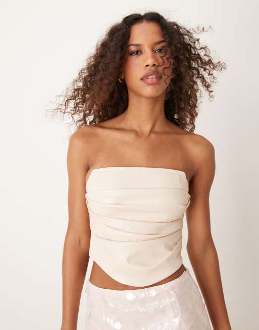 ASOS DESIGN structured leather look corset top in cream