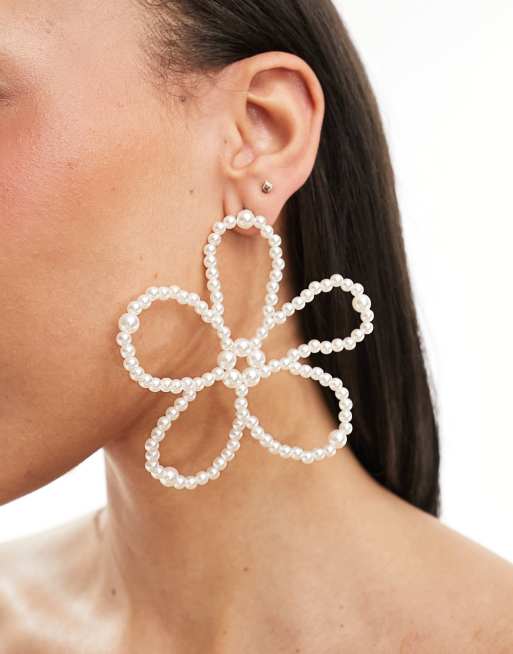 ASOS DESIGN stud earrings with XL faux pearl floral detail