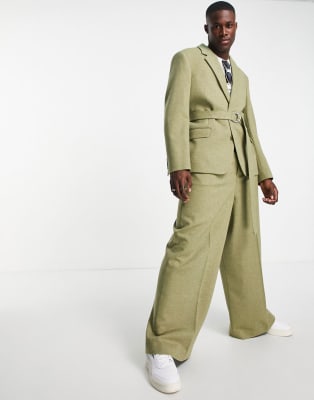 ASOS DESIGN suit with covered belt in sage