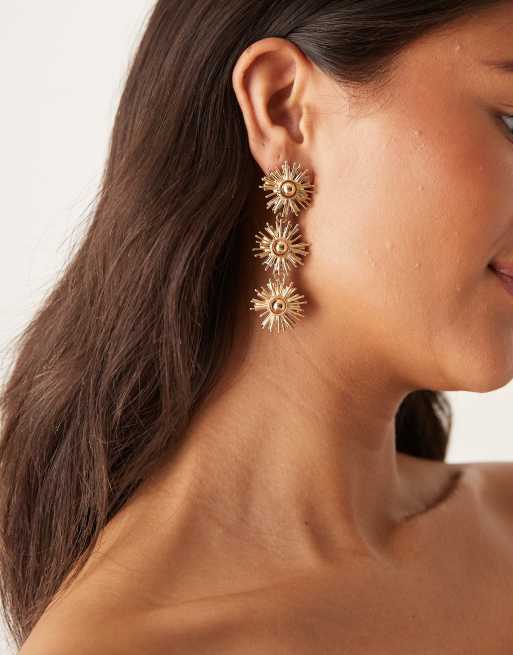 ASOS DESIGN sun earrings with triple drop detail in gold tone