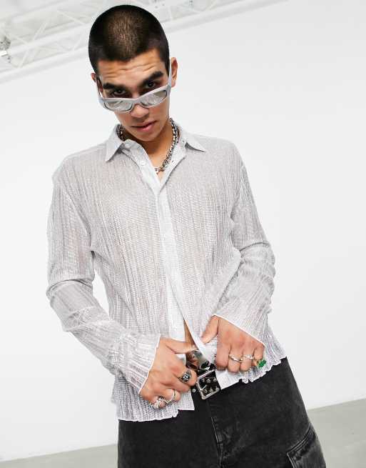 ASOS DESIGN super skinny shirt in silver metallic plisse