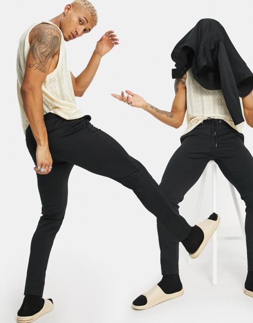 ASOS DESIGN super skinny smart pant in black jersey with drawcord waistband