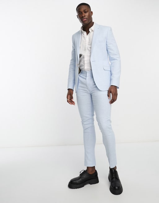 ASOS DESIGN super skinny suit in linen in puppytooth check in blue