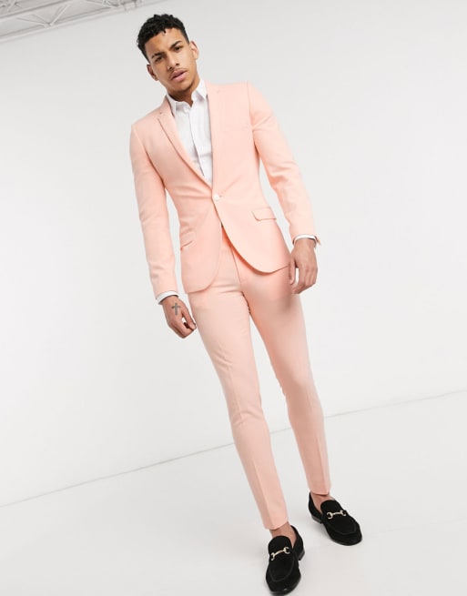 ASOS DESIGN super skinny suit in neon peach in four way stretch