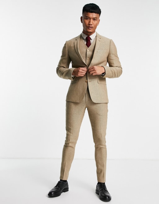 ASOS DESIGN super skinny wool mix suit in stone herringbone