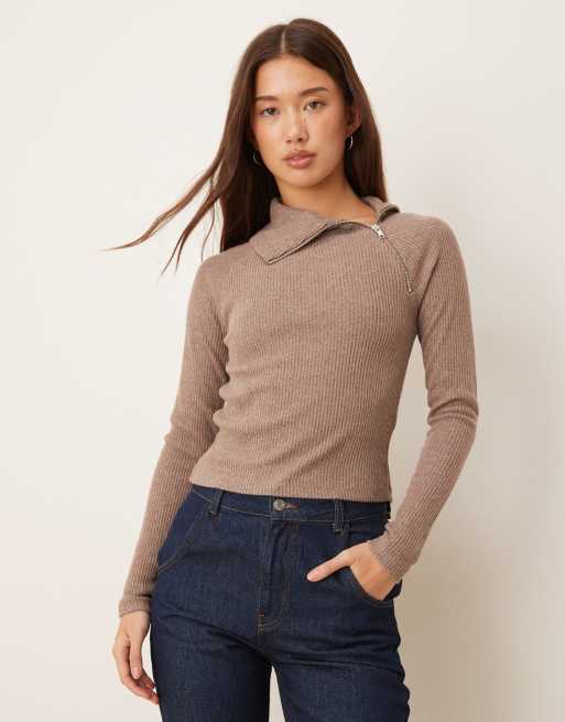 ASOS DESIGN super soft brushed rib long sleeve top with zip detail