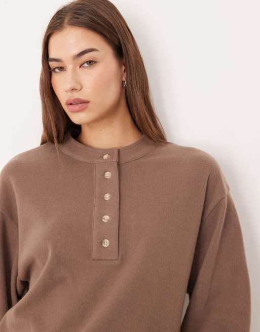 ASOS DESIGN super soft oversized henley jumper in chocolate
