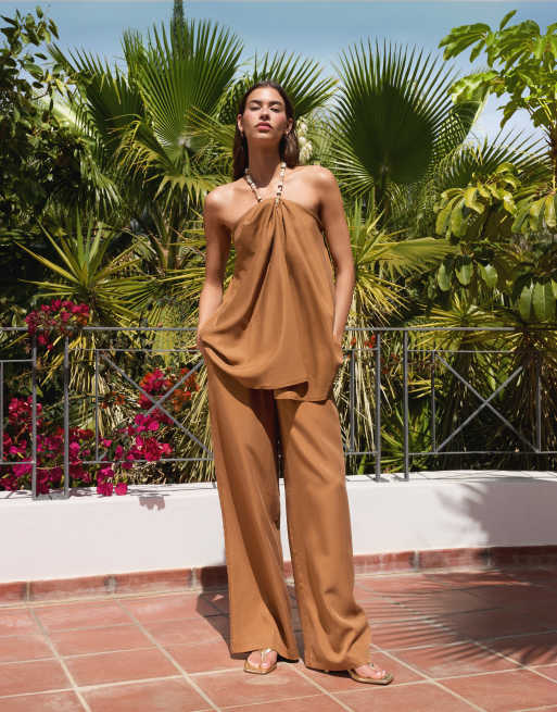 ASOS DESIGN super wide leg pants in camel (part of a set)