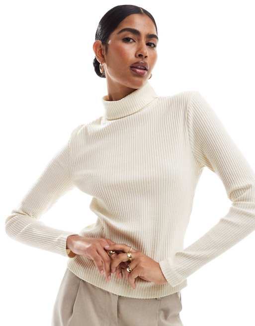 ASOS DESIGN supersoft brushed rib roll neck jumper in winter white